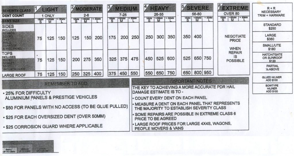 Recall the pricing matrix which proposed costs of dents per panel depending on the panel. There was some variation but it does give an indication of the PDR pricing in the Australian industry. In fact it seems this is consistent with pricing in the United States.