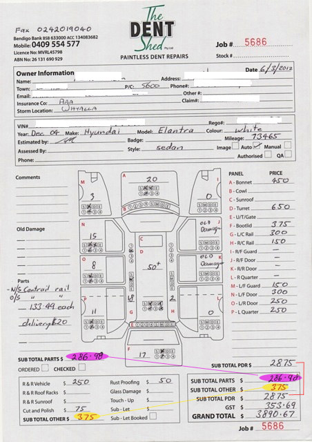- use the dent pricing matrix to calculate the PDR for each panel – note the total of these values to obtain the PDR sub-total